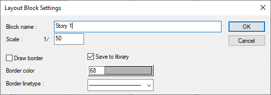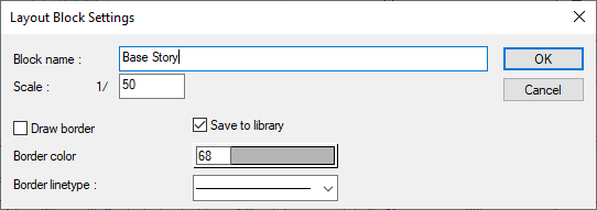 The layout block settings dialog will open. Write Base Story in the block name. Enter 50 for the scale value.