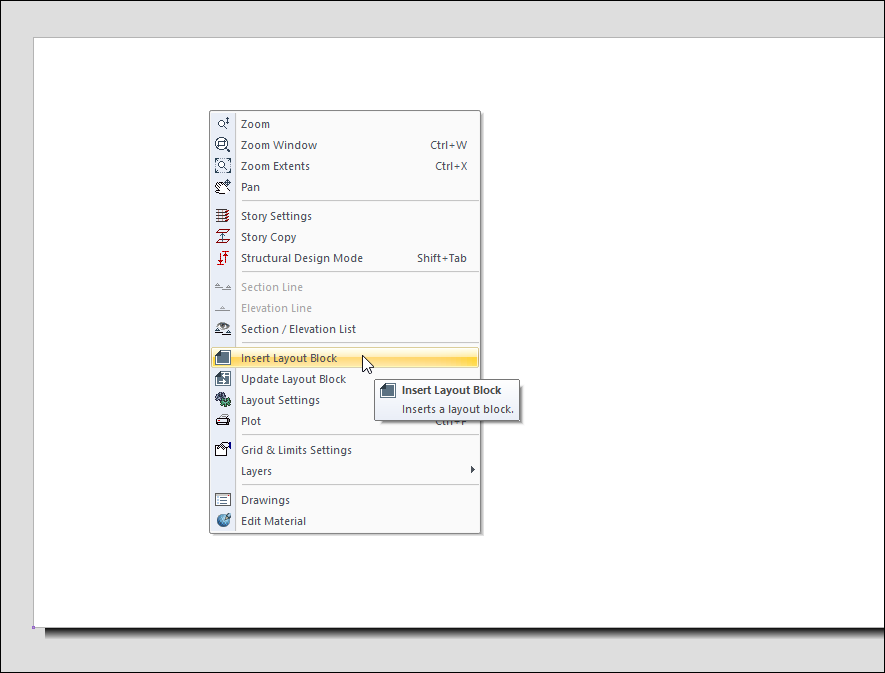 Go to the base story plan page. Click on the command new layout block - rectangle.