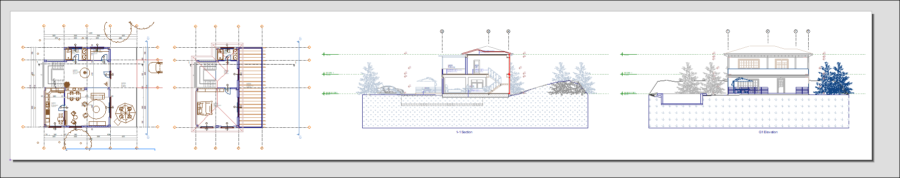 Place the 1-1 section and G1 view layout blocks to the layout.