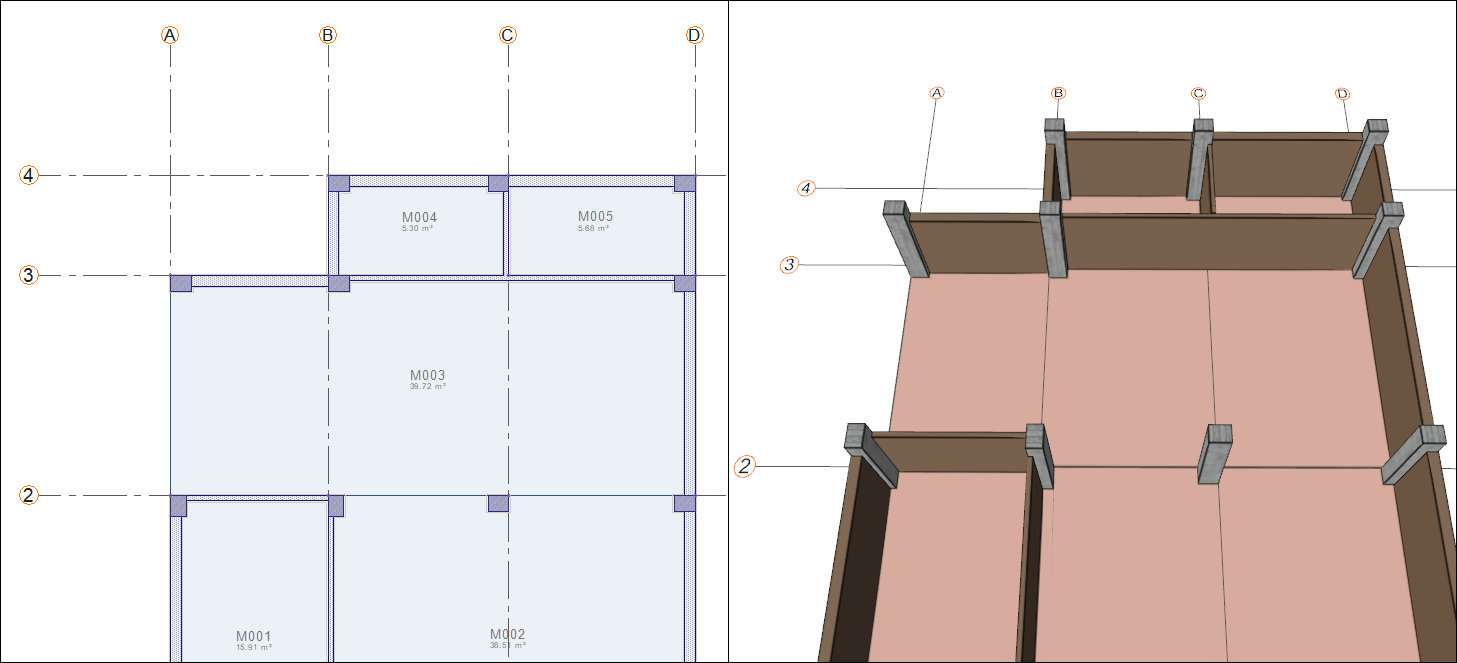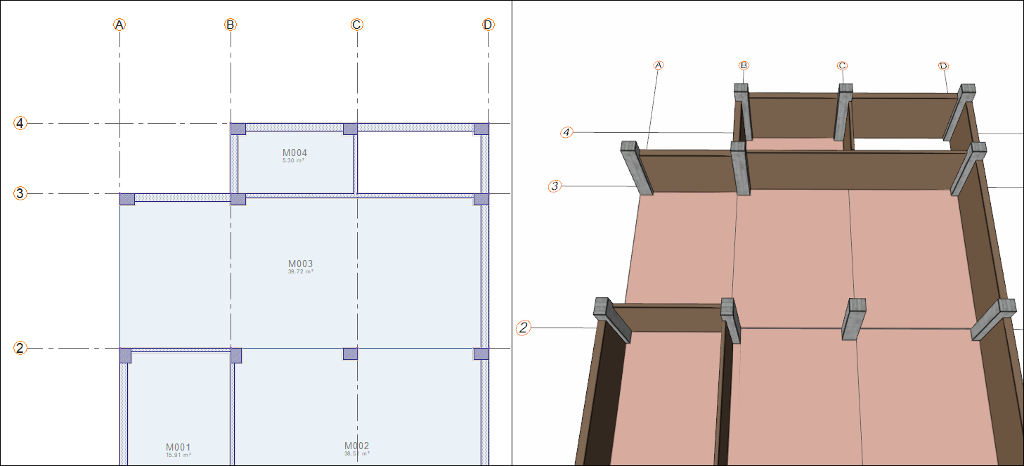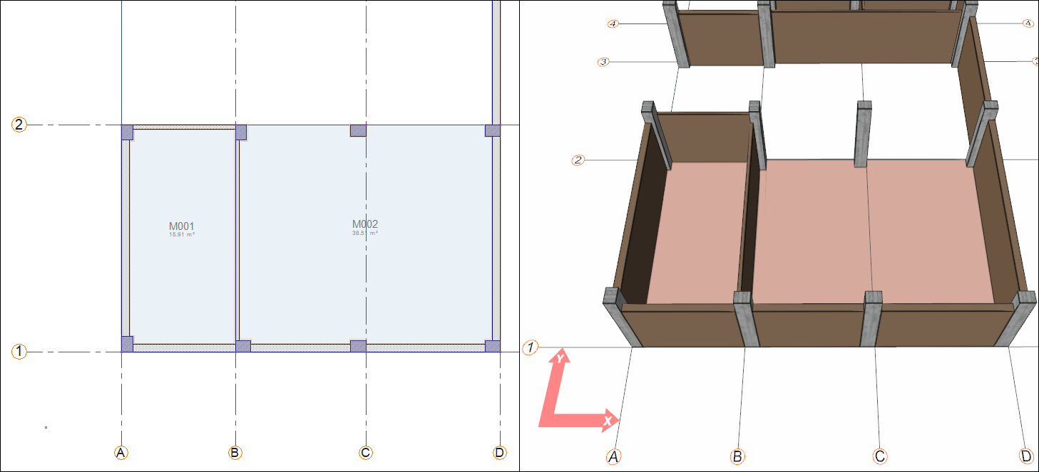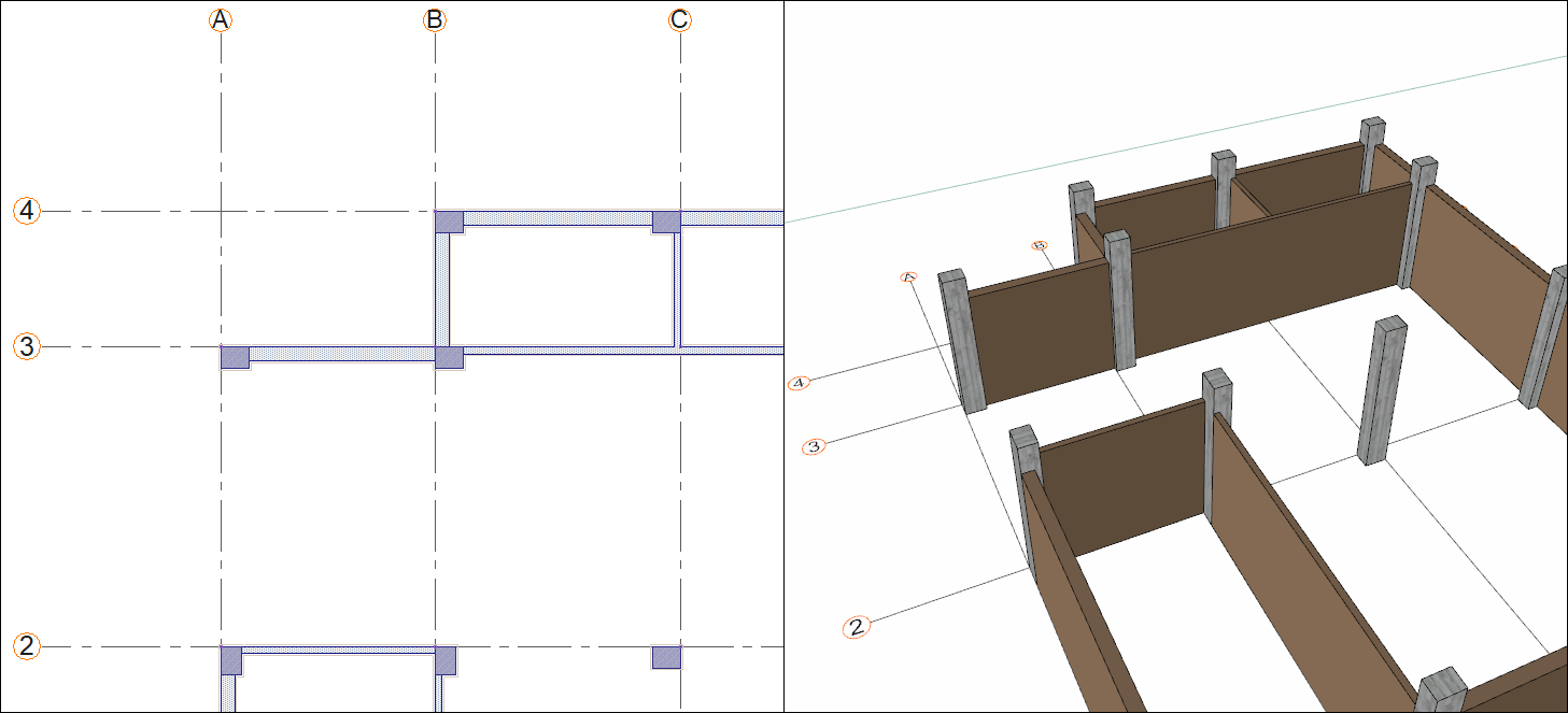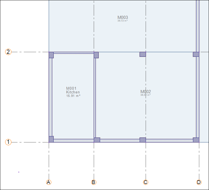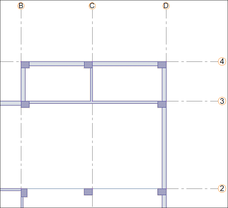 Click on B-2 axis intersection then click on D-2 axis intersection.
