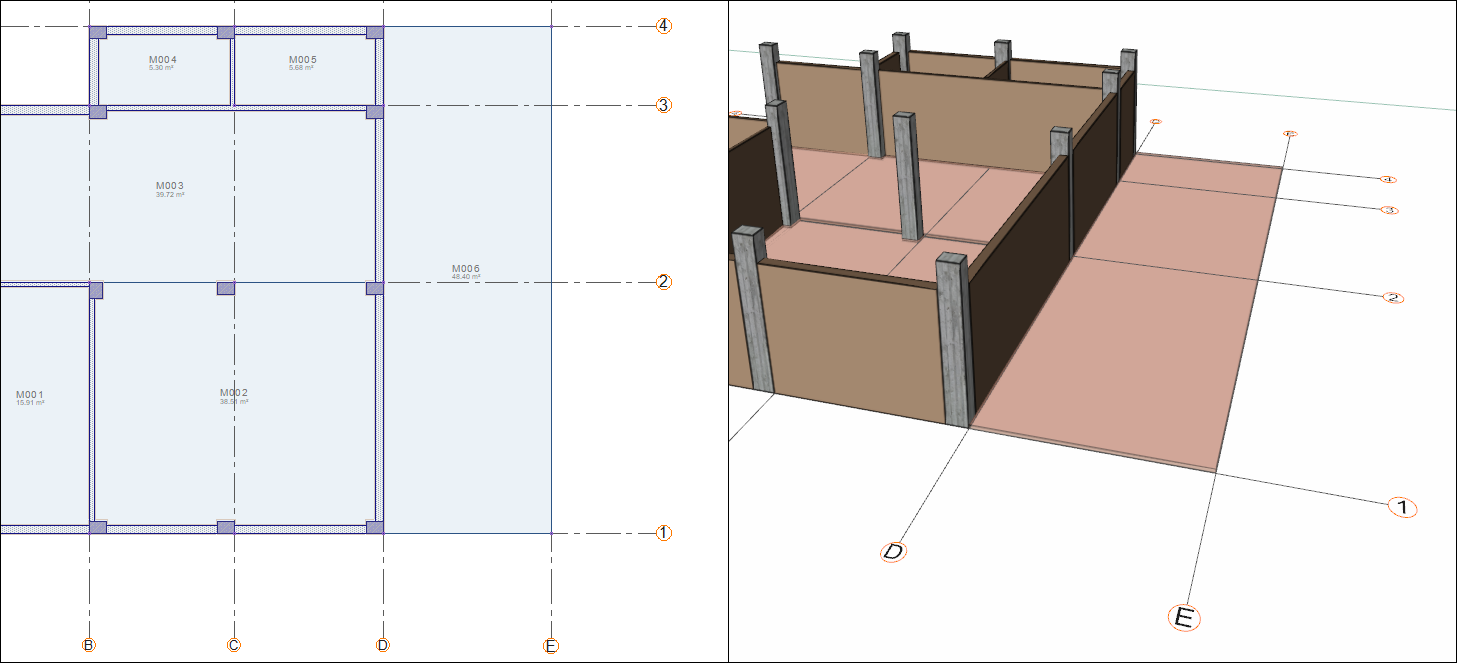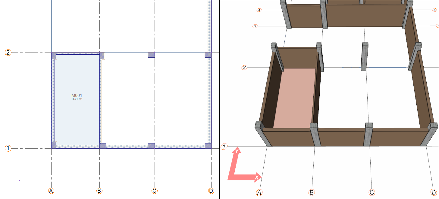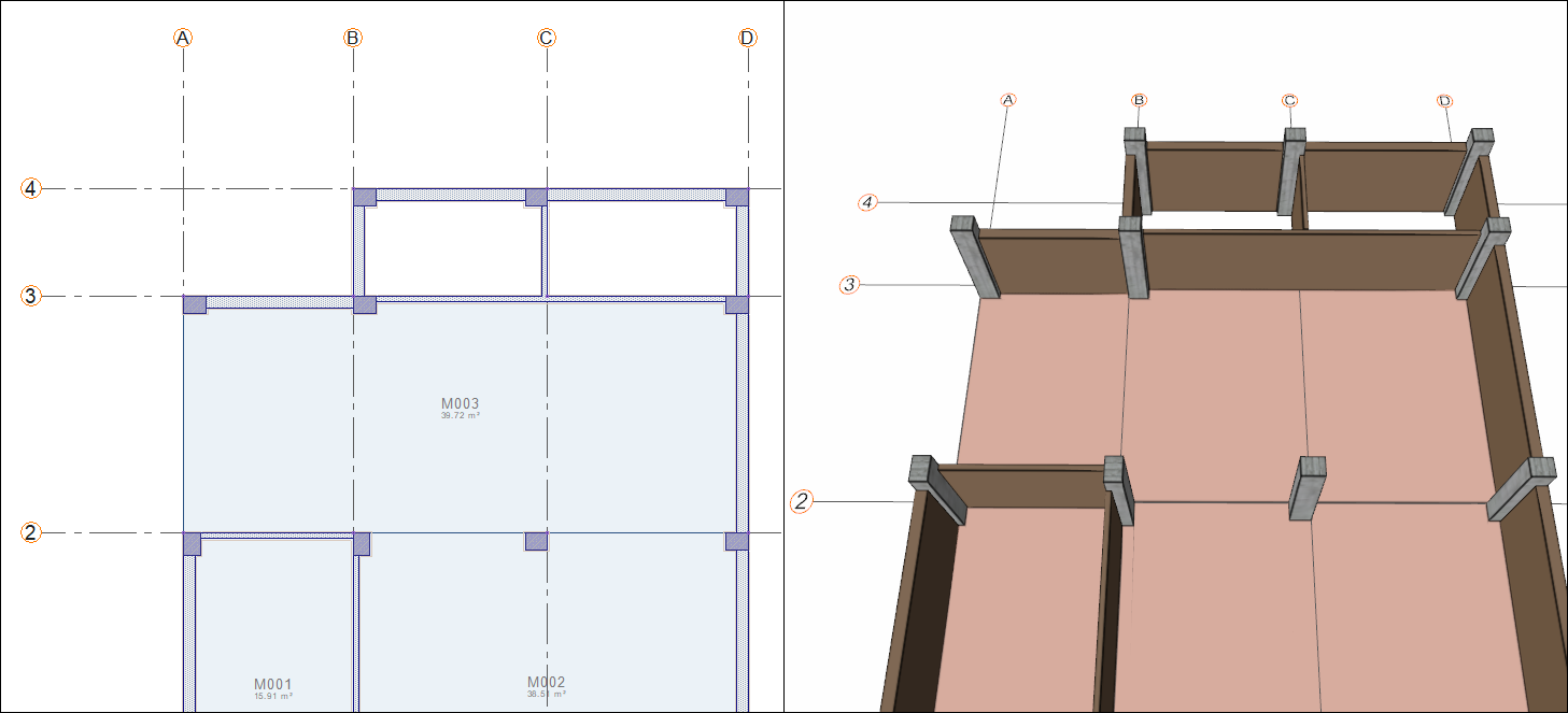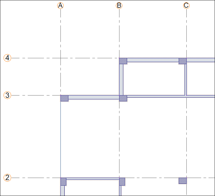 First, delete the wall located on the vertical axis A between the 2 and 3 axes. In the following steps, you will define a curtain wall here.