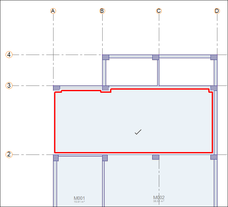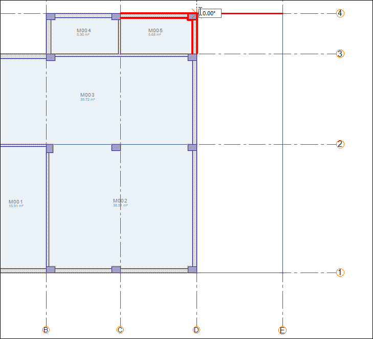 Click on the D-4 axis intersection. Zone edge will be formed.