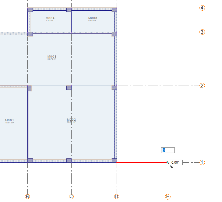 Click on the E-4 axis intersection. Zone edge will be formed.