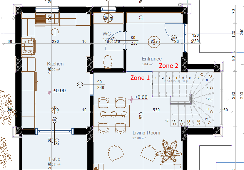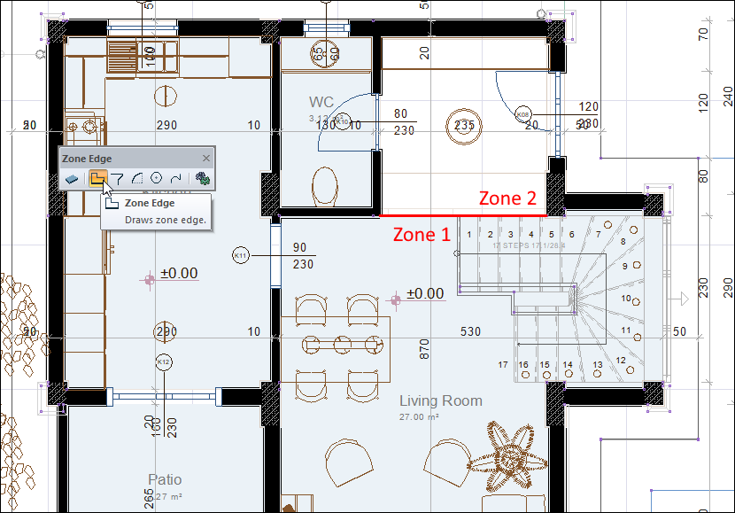 Two different zones are made by dividing an existing zone with "Home/Zone/Zone Edge" in the ribbon menu.