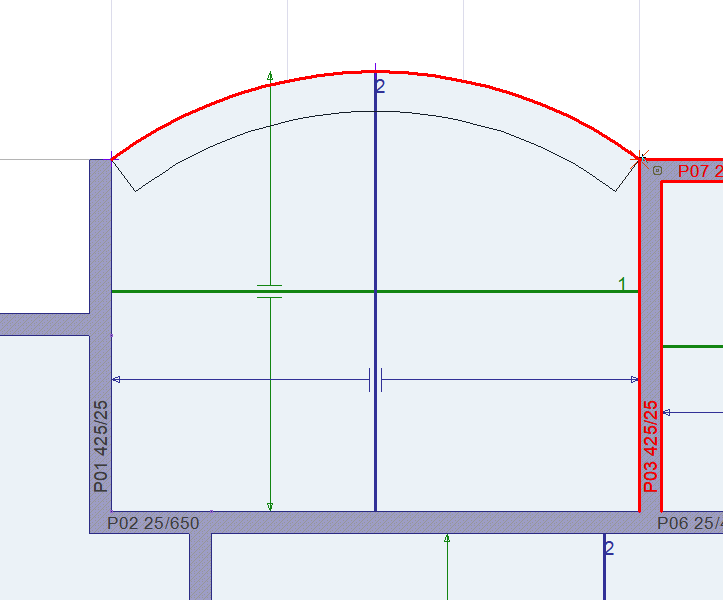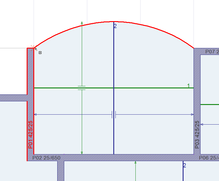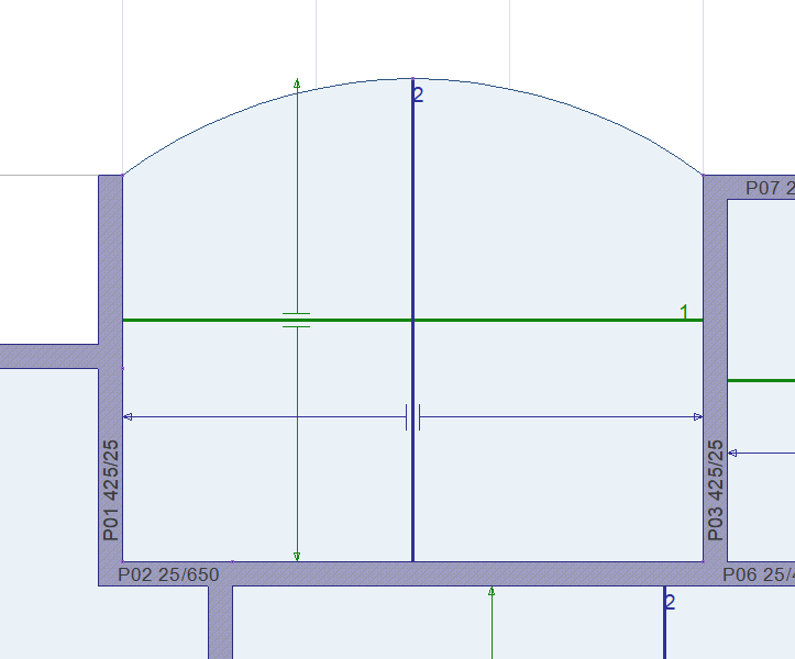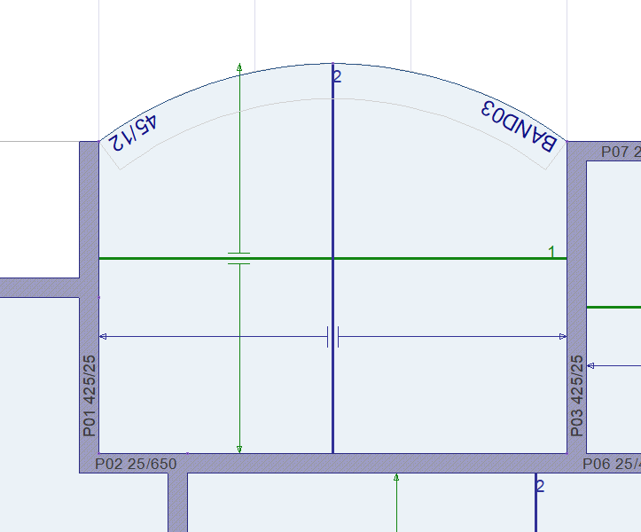 With the arc slab band command, arc-shaped constructive beams are created at the idle shearwall ends in tunnel formwork projects. Slab band beams are not used in the analysis.