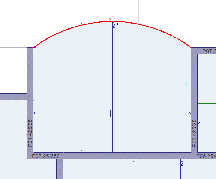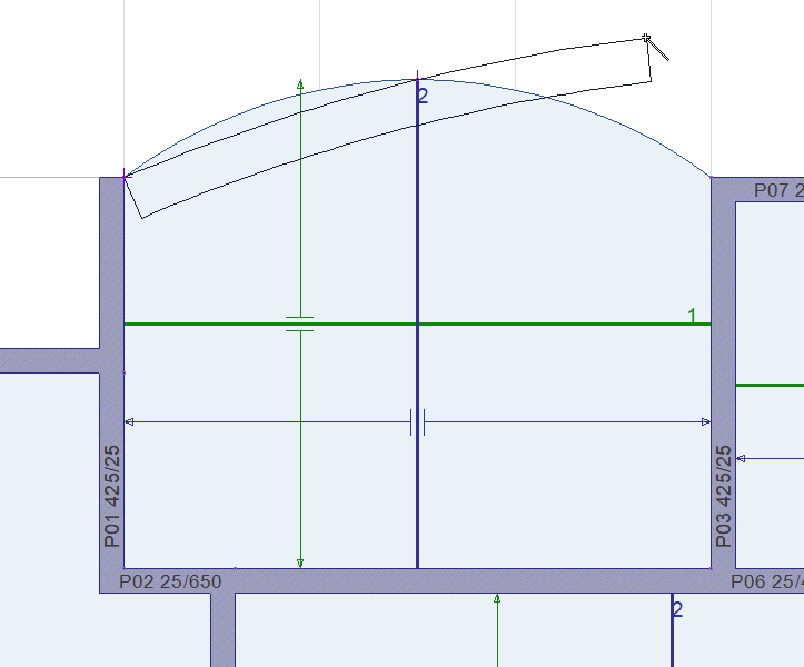 Move the cursor to the intended point and create the second point of the arc slab band by clicking the left mouse button.