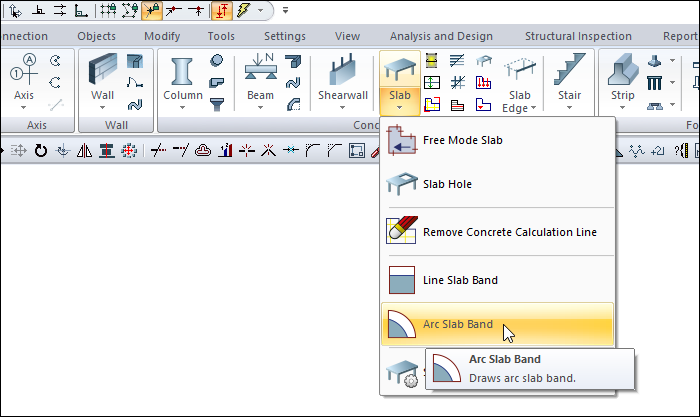 Location of Arc Slab Band Command