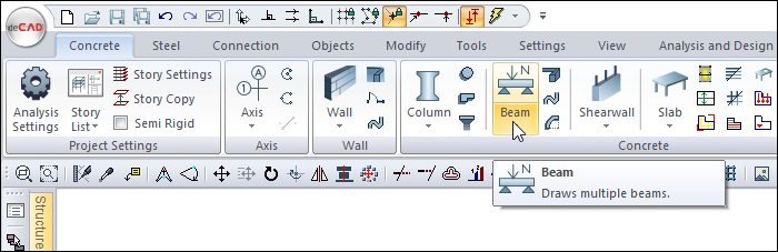 Click the Beam icon from the ribbon menu .