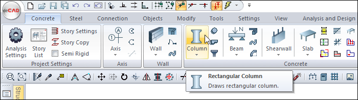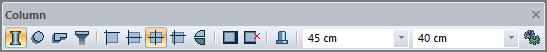 Rectangular column ![]() Runs the rectangular column command. Column dimensions can be entered in the Column Size boxes. |