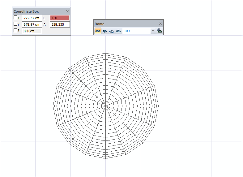 Click on the drawing area with the left mouse button. The dome will be drawn.