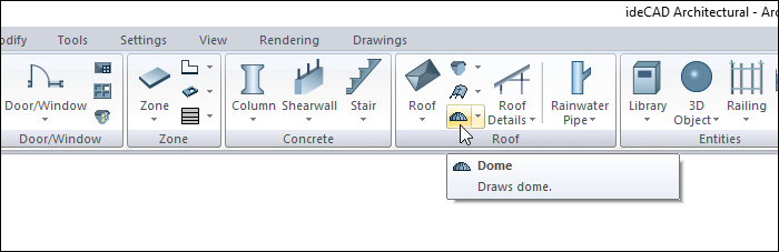 Domes of concrete design are created with the dome command.