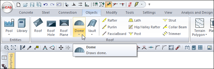 Click the Dome icon in the ribbon menu .