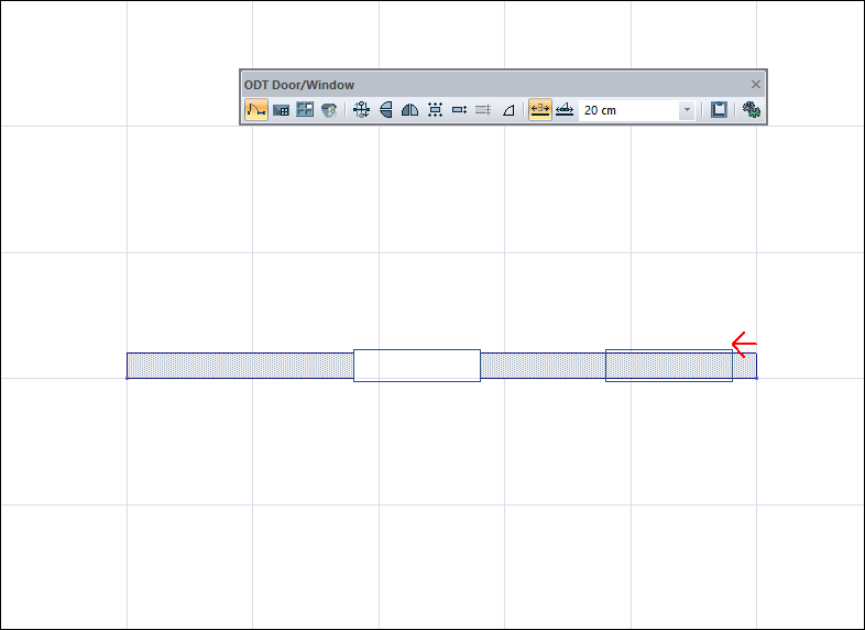 Enter 20 (cm) in the value box. Move your mouse to the left end of the wall. You will see that the preview of your door/window is shifted by the value you entered.