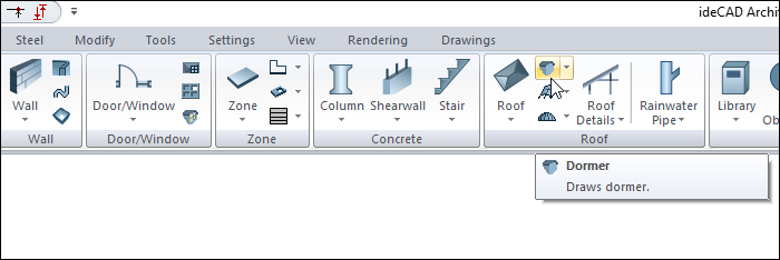 Click the Dormer icon in the ribbon menu .