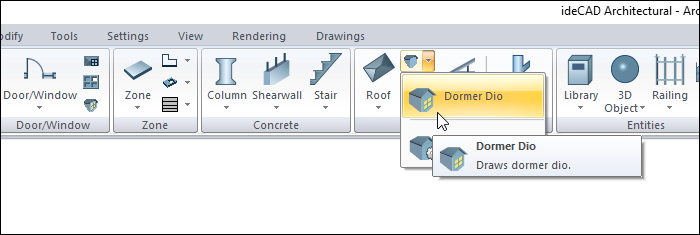Click the Dormer Dio icon from the dormer toolbar.