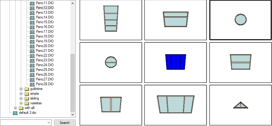 Entering the settings while in the dormer dio command, selecting the window type to be placed ![]() |