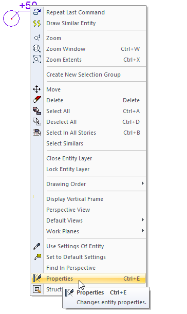 Select the elevation point you want to enter its settings and click the Properties line from the menu that opens by clicking the right button of the mouse .
