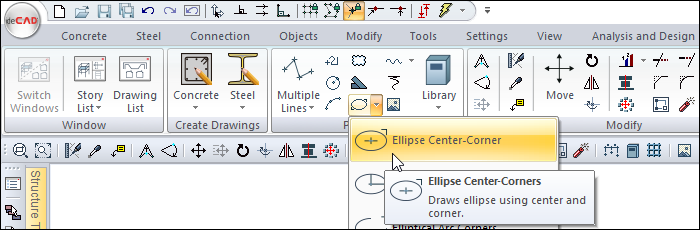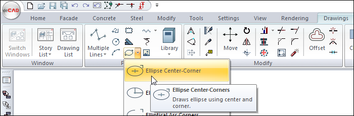 Click the Ellipse Center-Corners icon in the ribbon menu .