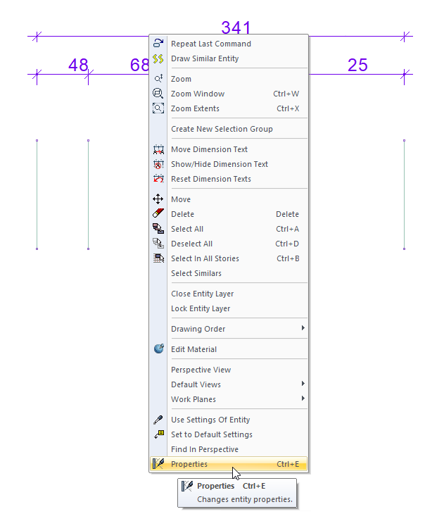 Select the free dimension you want to enter its settings and click the Properties row from the menu that opens by clicking the right button of the mouse.