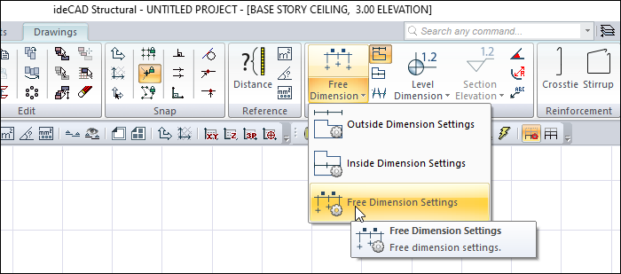 After running the Free Dimension command, you can also access it by clicking the Settings icon in the dimension auxiliary toolbar that appears on the screen.