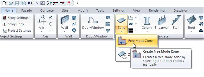 The zone is created by selecting the elements that will delimit the zone with the Free Mode Zone command by selecting contour.