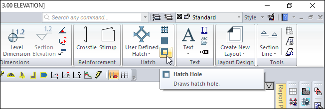 You can access it under the ribbon menu, Drawings tab, Hatch heading.