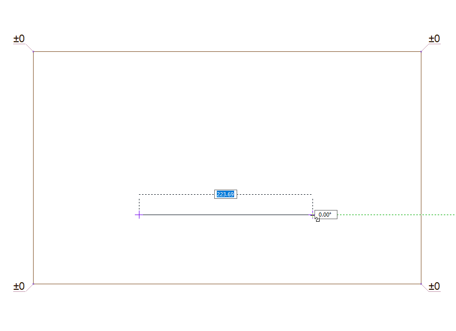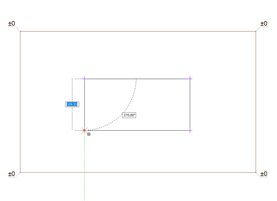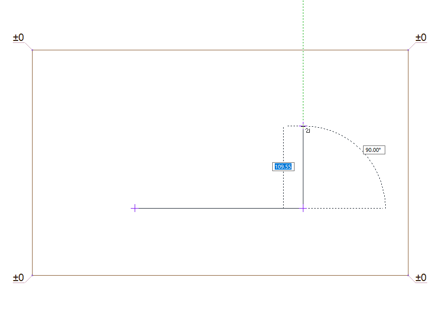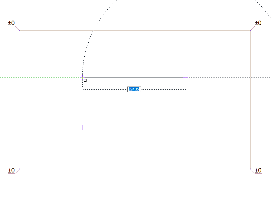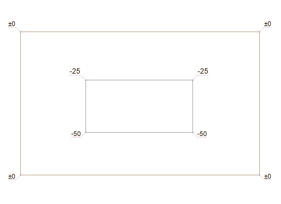 Before determining the third point of the closed polygon, entering the new elevation value (-25 cm) in the terrain toolbar ![]() |