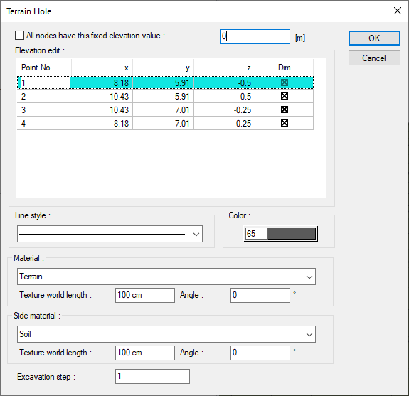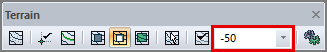 Entering the elevation value (-50 cm) into the terrain toolbar opened while in the hole command ![]() |