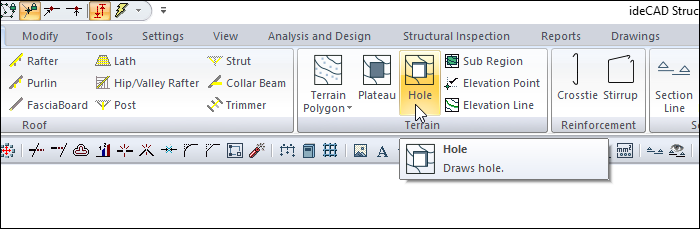 The hole command creates a hole on a defined terrain or piece of terrain.