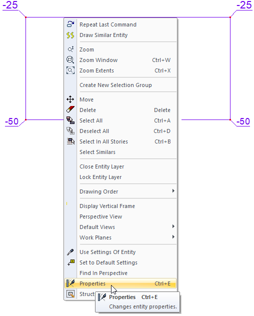 Select the hole you want to enter its settings, click the right button of the mouse and click the Properties line from the menu that opens .