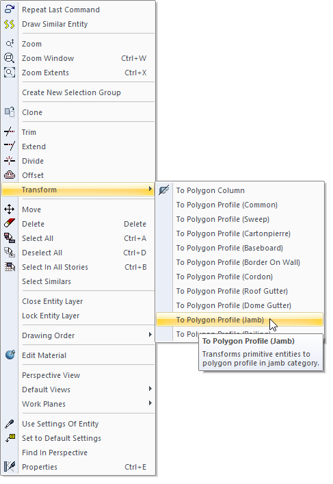 Click the Transform/Polygonal Profile (Jamp) line from the menu that opens .
