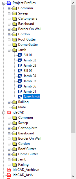 Primitive objects are used to create a jamb profile. By creating a closed area, a drawn section is transformed into a jamb profile object. During the transformation process, the profile object archive is opened and the section is saved there.