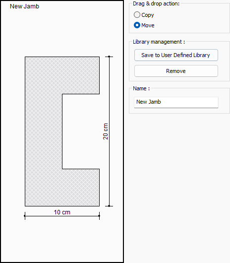 While defining the jamb, one of the defined sections is selected by opening the Select Profile in the Jamb Settings dialog.