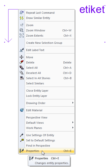 Select the label that you want to enter its settings and click the Properties row from the menu that opens by clicking the right button of the mouse.