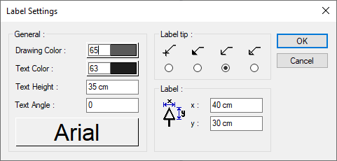Enter the text in the dialog that opens and click the OK button. The label will be drawn.