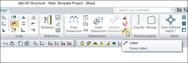 After the label command is run, you can access it by clicking the Settings icon in the dimension toolbar that appears on the screen.