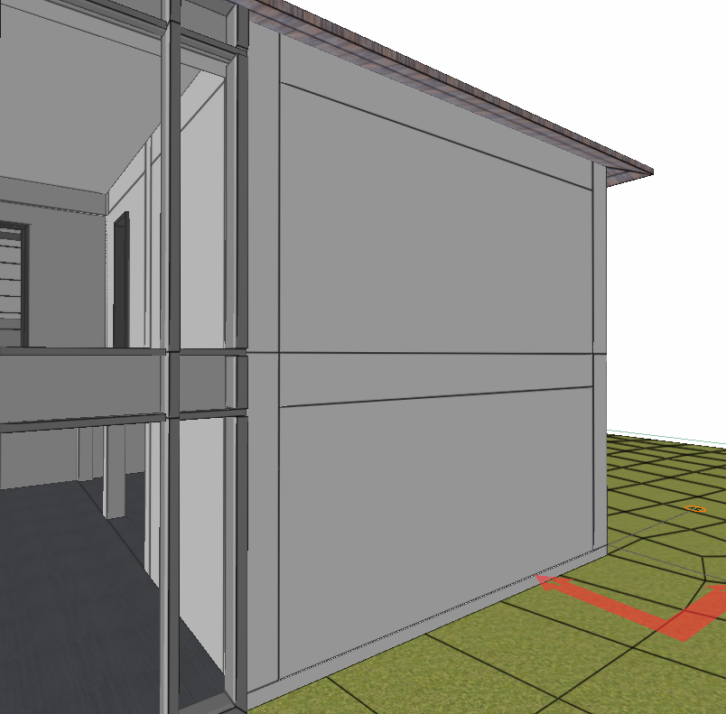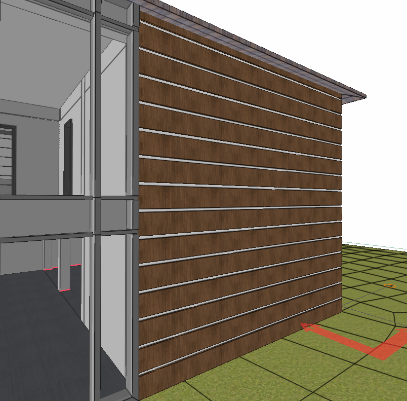 The Lap Siding with Gap command draws the exterior veneer as a lap siding with gap.