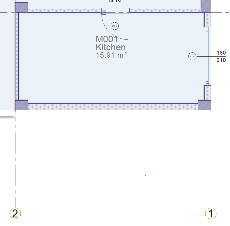 In the drawing area, determine the 1st point of the facade element by clicking with the left mouse button.