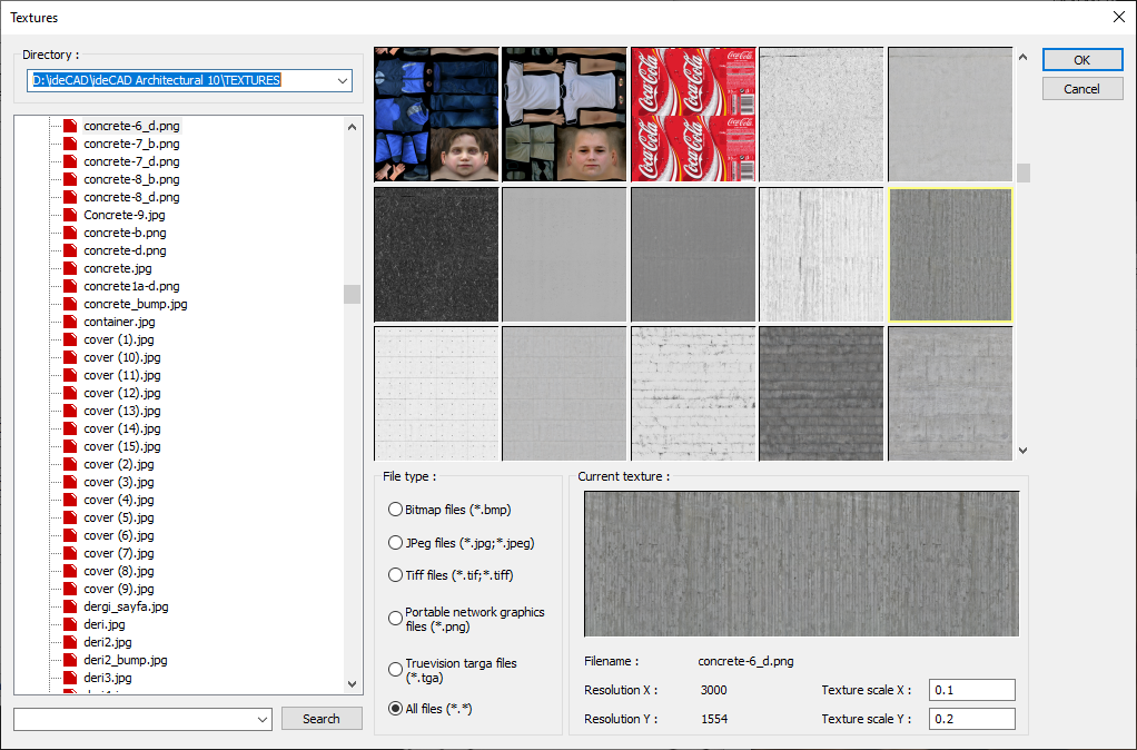The textures dialog will open. From here, you can select the image you want, or you can go to another location on your computer and choose an image from there.