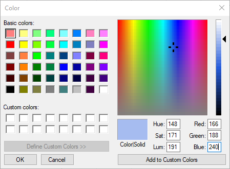 You can choose the color you want from among the basic colors, determine the tone you want by clicking on the color map on the side, or you can enter the red/green/blue color codes.