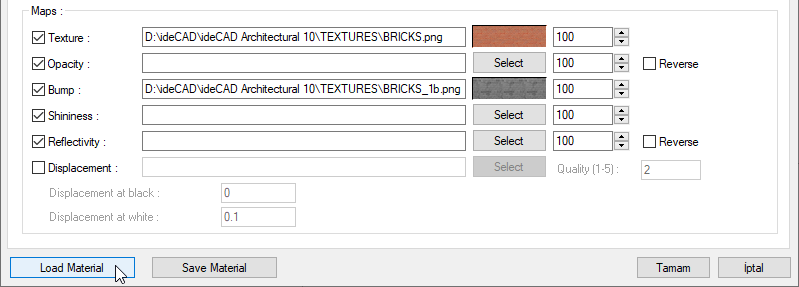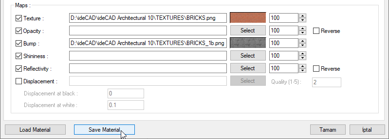 It saves the created material as .imt extension. The material can be used in the desired project by loading it from the material editor.