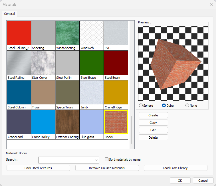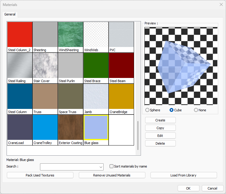 When you close the item editor by clicking the OK button, your material will be added to the material list.