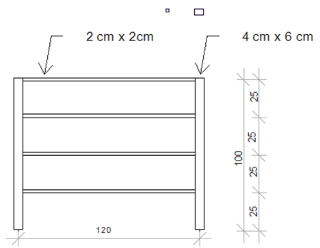 There are 4 handrails of 2x2 cm and two railing profiles of 6x4 cm in the selected railing type. Create profiles in 2x2 cm and 6x4 cm dimensions and save them in the archive.