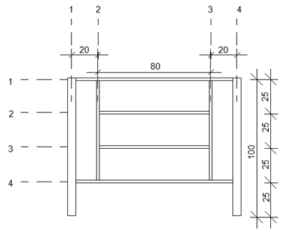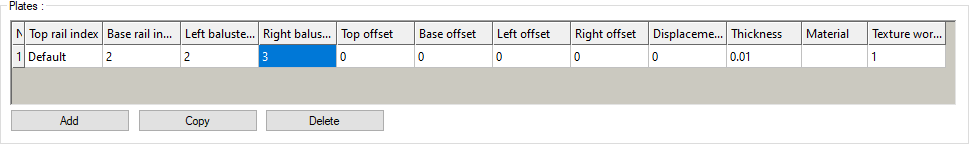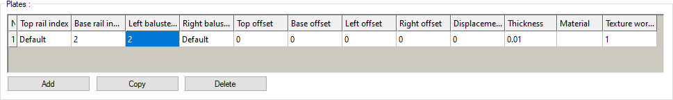 The numbers shown in the figure in the horizontal and vertical directions are the index numbers of the rails and balusters. (These are the values that will appear as N in the table)