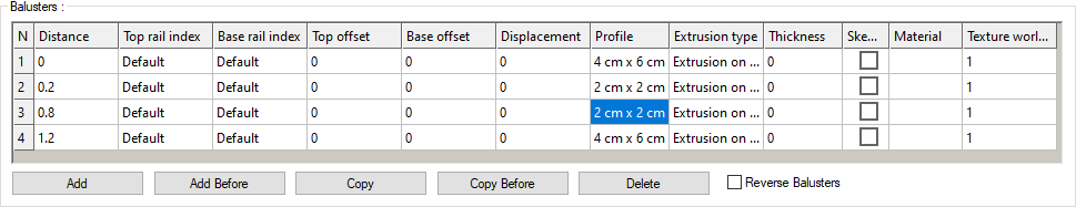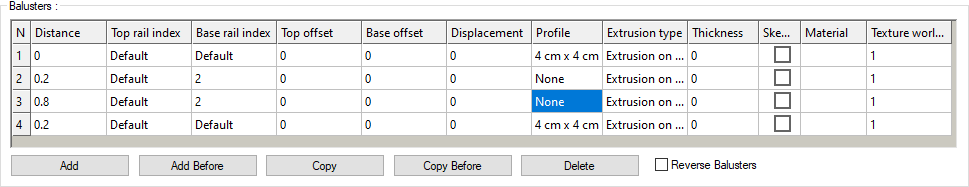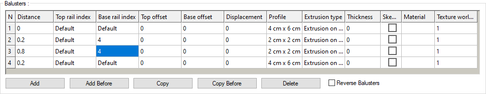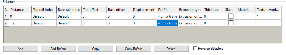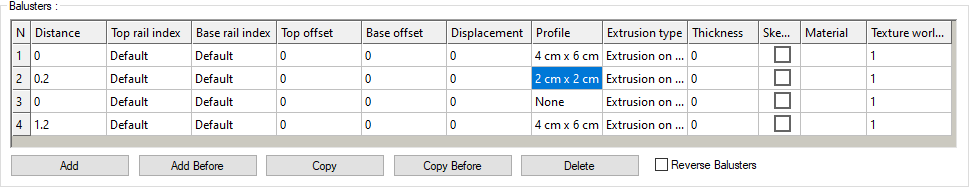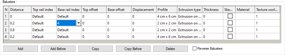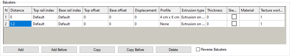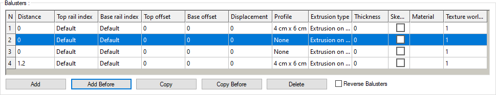 Adding 2 more balusters by clicking the Add Before button 2 times while in the N = 2 line ![]() |