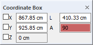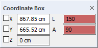 To enter the length , press the L key on the keyboard . The cursor will go to the L digit in the coordinate box . Enter here 350 (cm) as the length value and press enter. The path being drawn will be limited by the length value.