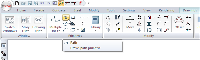 The path command draws straight, curve, and arc mode in polyline forum. Path is an auxiliary command used to create objects such as stairs and pools.