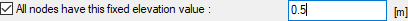 All nodes have this fixed elevation value ![]() The feature is activated and the value entered here is applied to all elevation points. |