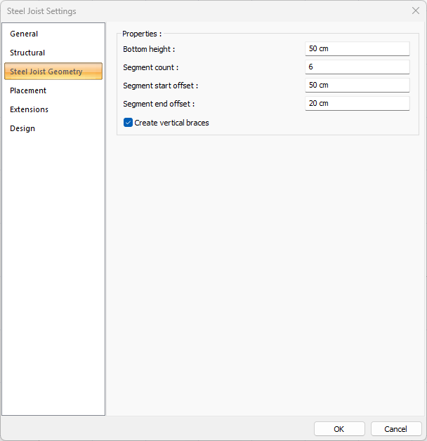 When you select your second steel beam or truss head, the Steel Joist Settings dialog will open.