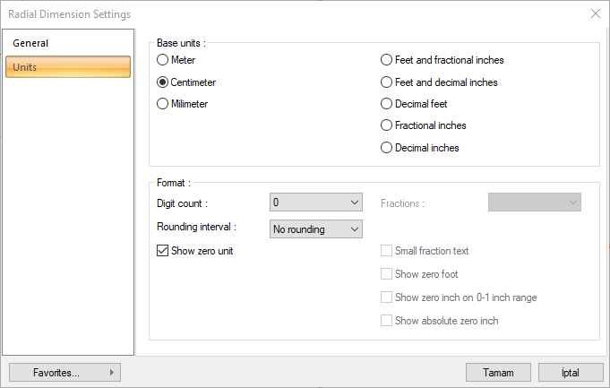 Fractions ![]() It determines the precision of the dimension to be made in fractional inch format. In the list, there are options with a sensitivity of 1/2, ¼, 1/8, 1/16, 1/32, 1/34. If "no fraction" is selected, units will appear without fractions. |